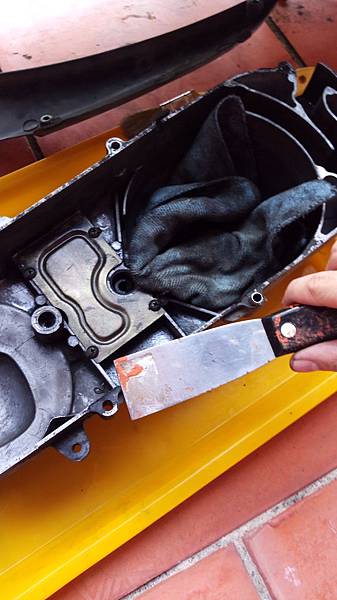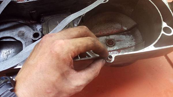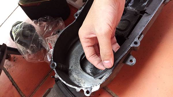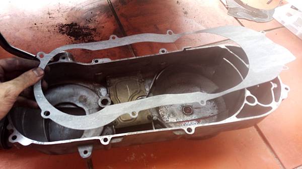 上面會有這種護蓋膠皮,如果像圖中這樣爛爛的黏在護蓋上,記得把他們摳掉,不然會影響傳動蓋的密合度