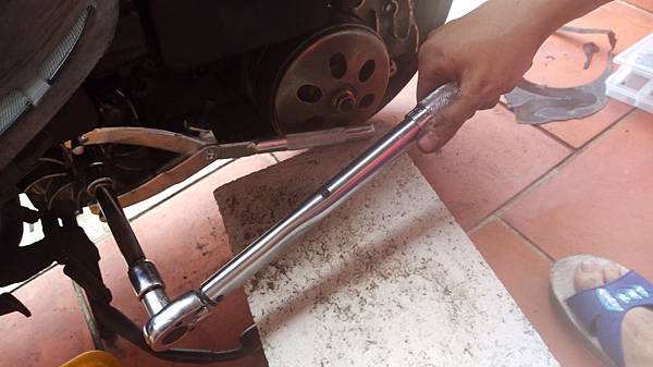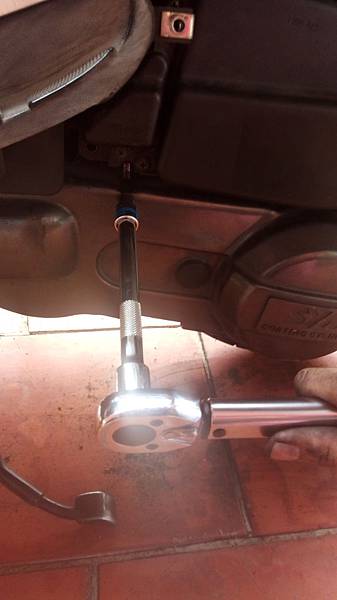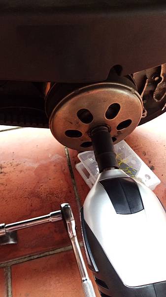 蓋上傳動蓋,扭力板手調整至1.5 kgf-m(原廠建議值 1.01.5 kgf)(這步驟也可以使用電動起子調整扭力直接鎖回去,不用太緊,怕會把墊片逼到變形)