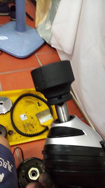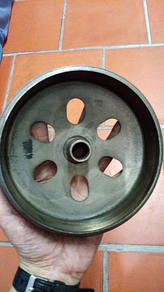 開閉盤(傳動皮帶輪)檢查輪面磨耗程度,還有滑動軸磨耗程度,看起來已經磨耗很多了,之後找機換更換