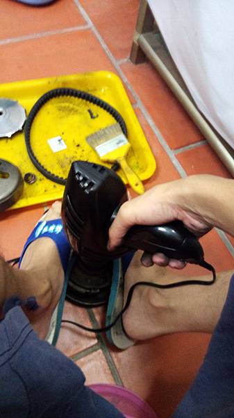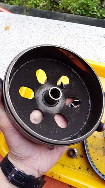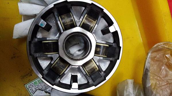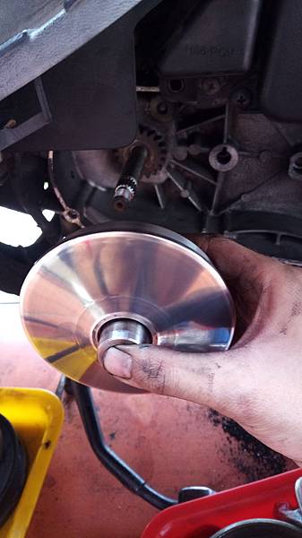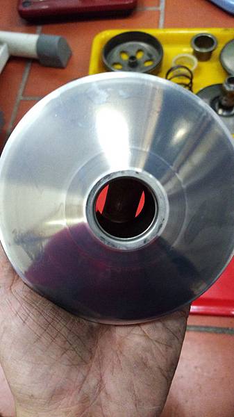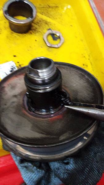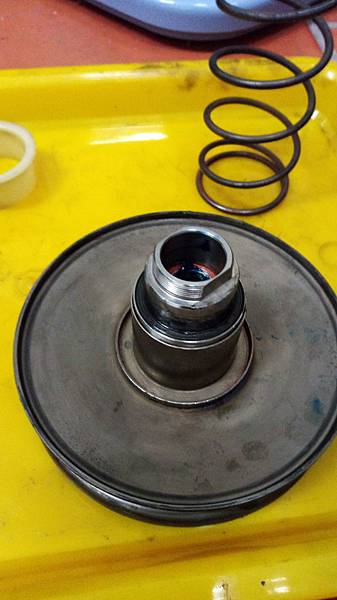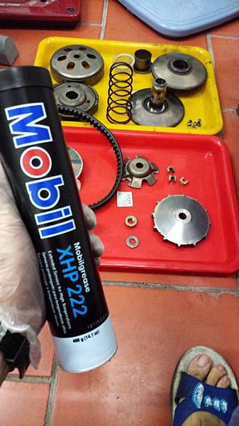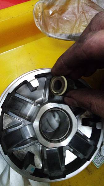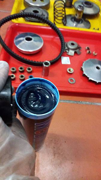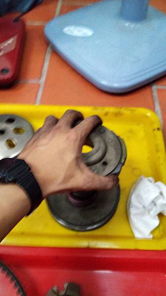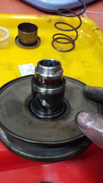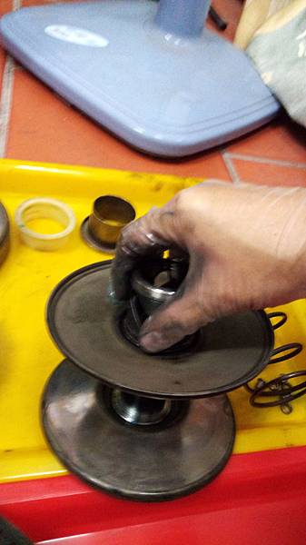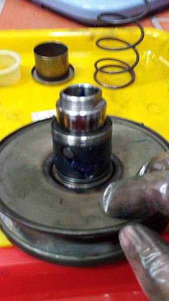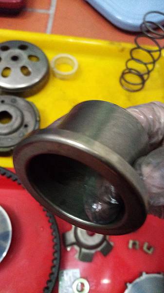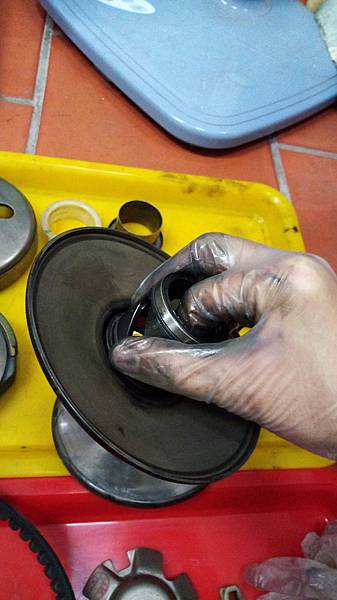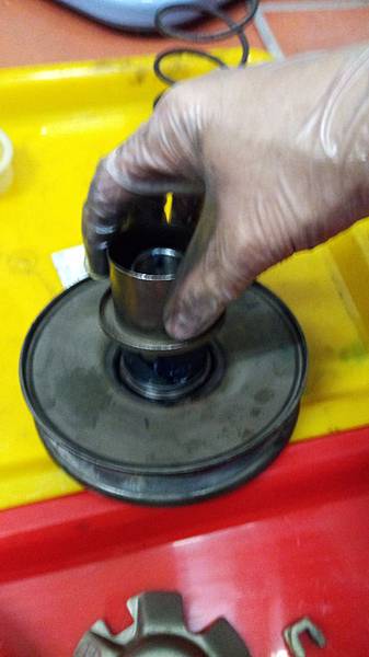 滑動盤外徑與內徑也塗抹一層,然後再套入傳動皮帶輪