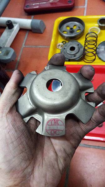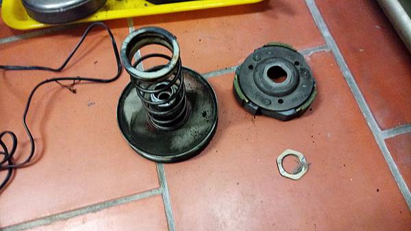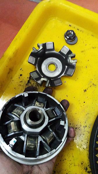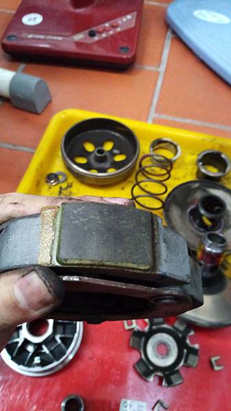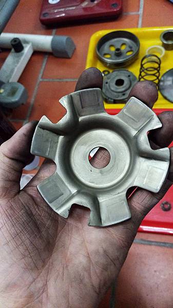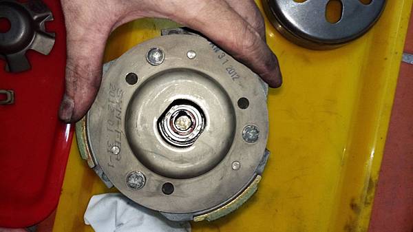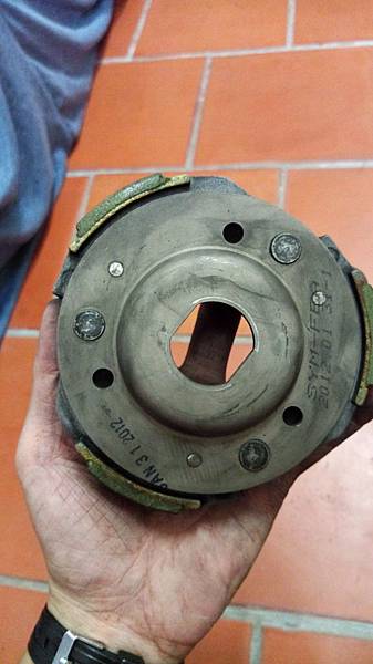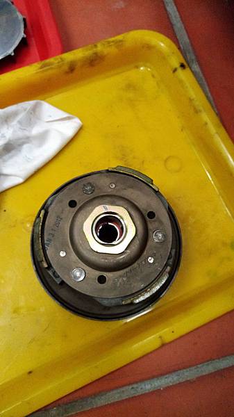 離合器可以檢查離合器皮的磨耗程度,拆下來看到已經被磨成油油亮亮的樣子了,這時候可以用#300砂紙磨過,增加摩擦力