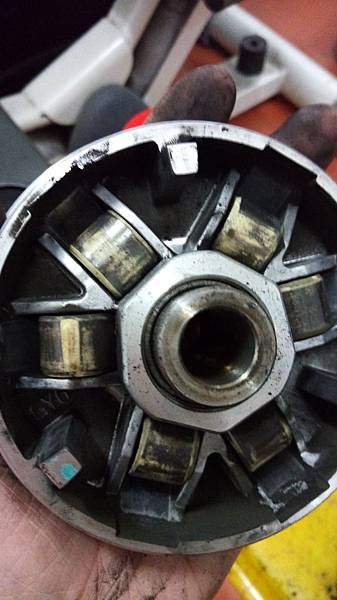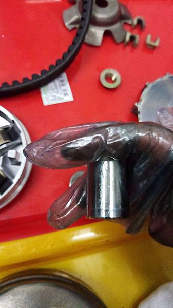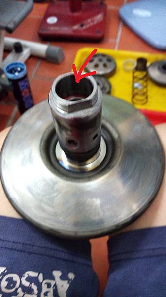 普利珠也是常常需要更換的項目之一,最常見的是普利珠磨出角來,圖中箭頭處就是稍微磨角的普利珠,磨到太嚴重就更換了