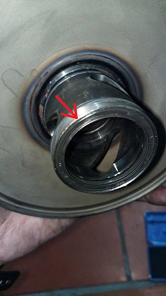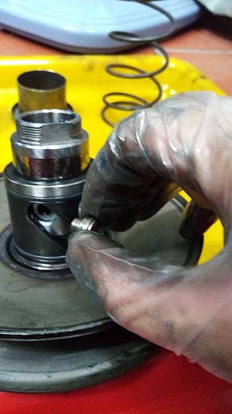 滑動盤上下兩個端面都各有一顆油封塞著,檢查它們有沒有受損或老舊,避免漏油,圖中這個看起來是正常