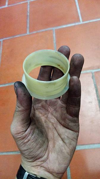發現黑色不明黏稠狀的糊,這是老舊的黃油,已經喪失良好的潤滑功能了