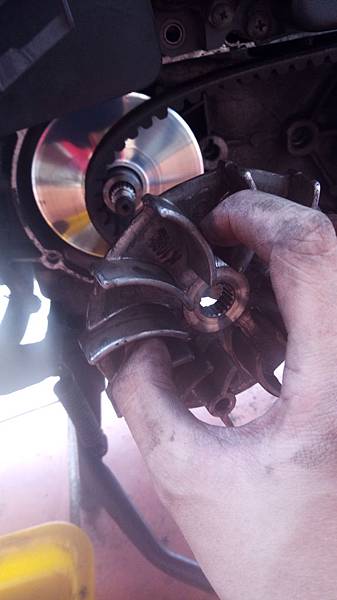 如果剛剛皮帶卡不夠深,楓葉盤會頂著皮帶導致無法推到底(可以看到風葉盤似乎放到底了,結果區軸的齒露出來)