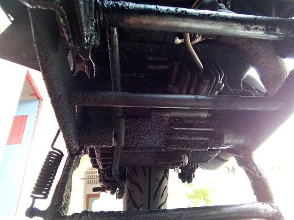 見到這種情形的我,當然是發揮工程師功能,把家人的機車整理一下,讓她可以安全騎上路前幾個月有整理過一次,把車殼跟開關等等零件換過,所以圖片看起來機車似乎挺新,其實...看到車底下,滿滿的都是油泥...